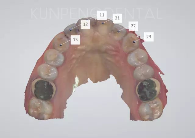 備牙后俯視圖及正面照